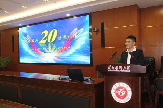 员工代表何其凡细数外院美好往事,提及自身求学经历,感恩母校,感谢恩师,听者为之动容。在校生代表张宝丹,以朝气蓬勃、积极向上的姿态展现外院学子不断勇攀高峰的精神。