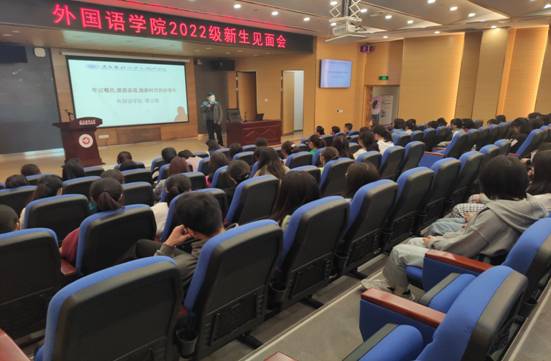 公司党委书记谭占海教授以习近平主席对青年的寄语厚望3个“不负”为切入点展开讲解。作为一名新时代青年要以实现中华民族伟大复兴为己任,同时为同学们详细介绍了什么是外语类专业,帮助同学们更好的了解专业课程,以严谨、勤奋的态度迅速进入学习状态,做好大学四年的学习规划,提升专业学习能力,为传播好中国故事贡献外语人的力量。他倡导同学们深入学习党的二十大精神,鼓励同学们为全面建设社会主义现代化国家而努力学习,为实现中华民族伟大复兴而努力学习。