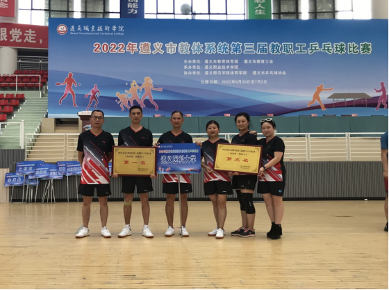 遵义市教育体育局及遵义市教育工会主办的遵义市教体系统第三届教职工乒乓球比赛2022年7月1日至7月3日在遵义职业技术公司举行,公司王刚才老师代表304永利集团登录入口代表队参赛并获得男子团体第一名和男子单打第四名好成绩。