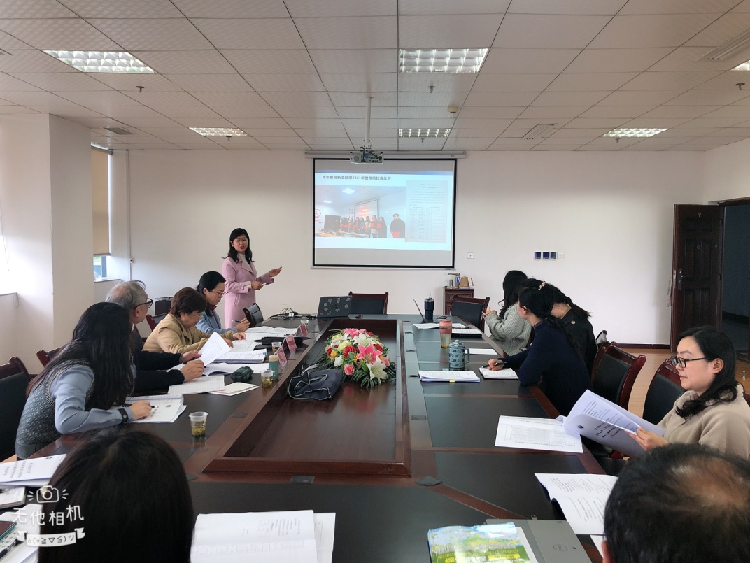 考核伊始,导师王梅、金江琴分别对指导的青年教师钟钰、靳凌的基本情况、培养计划、落实情况、培养效果进行总结汇报。紧接着,青年教师钟钰、靳凌开始自我总结汇报然后进行现场教学展示,最后在场的8位专家对两位导师和两位青年教师给予肯定的评价,并提出了宝贵的建议。