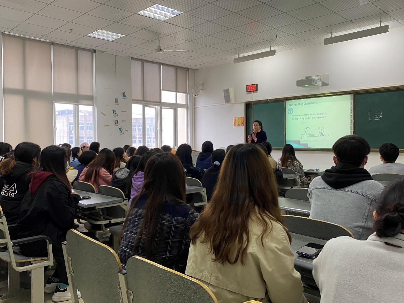 为增强老员工求职技能,提高应对职业面试的心理素质能力。2022年3月31日下午,304永利集团登录入口在第一教学楼5-18B教室举办求职面试指导。2020级全体员工参加讲座,讲座由外教老师Hannah主讲。