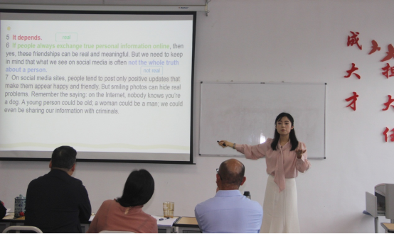 比赛结束后,王梅经理对本次竞赛作了点评。她从构成比赛的四个方面对比赛作了总体回顾,并对每一位参赛选手的表现进行了详尽的梳理,对模拟教学表现优异的选手作了重点点评。同时,她也指出了选手们在语音语调、PPT内容设计和教姿教态等方面存在的不足。最后,她鼓励参赛选手和观赛同学们在今后更有针对性地进行理论学习,在实践当中培养和不断提升自身的教学能力。