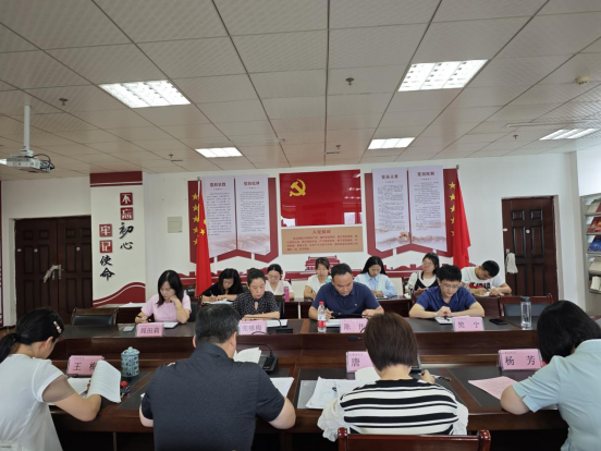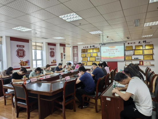 2024年7月1日下午14:30,公司党委理论学习中心组在综合实验楼414会议室召开扩大学习会议。公司党委领导班子成员谭占海、唐茜、杨芳、何永娇、李恬恬出席;护理公司党委书记张咏梅、副书记陈伟,公司经理王梅、各党支部书记、副书记、各科室负责人列席。会议由公司党委书记谭占海主持。