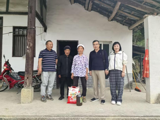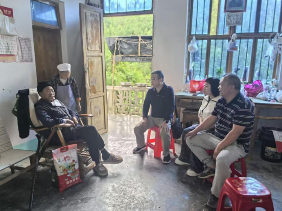 随后,谭占海和唐茜为龙岗村党员发放慰问品,并与党委班子成员一同前往龙岗村重疾老党员家中进行慰问。