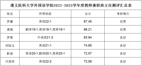 现将2022-2023学年度教师兼职班主任测评汇总结果予以公示,公示时间为2023年9月7日至2023年9月9日。