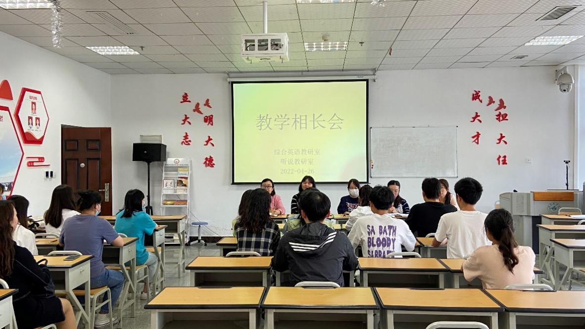 2022年4月26日下午15点40分,304永利集团登录入口综合英语教研室及听说教研室于专业5教室召开了2021-2022第二学期教学相长会。会议由综合英语教研室主任何永娇老师主持。听说教研室主任王厚红老师,任课教师代表张泽玫、阮晔、张晖、黄保丹、官姝雅、秦雪飞,以及2020级、2021级20余名专业员工代表参加了此次教学相长会。会上,各班员工代表就阅读、听力、口语、语法、写作、跨文化交际等课程,对老师授课提出了一些宝贵的建议和意见。老师们也对各班级的整体学习情况做了介绍,提出了期许。老师们针对员工提的意见建议现场进行了解答,同学们也畅所欲言积极提出他们希望获得的教学内容、教学方式等。会议气氛融洽,增进了老师和同学之间的感情,促进老师们进行教学反思,为老师们的教学安排调整和员工学习动力起到了互推互进的积极作用。