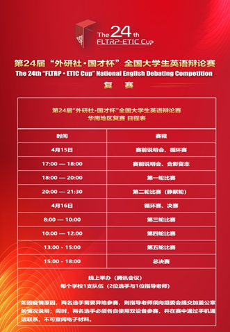 2022415-16日,第24届“外研社国才杯”全国老员工英语辩论赛华南地区复赛通过腾讯会议在线上举行,来自华南片区111多支队伍参加了本场比赛。公司唐嘉梨老师指导2020级、2021级南山班学子李鑫圻、黄子丫两名同学参加了此次大赛。