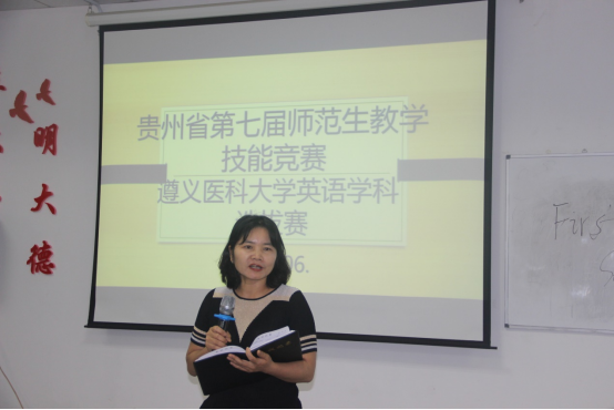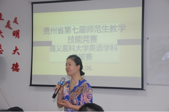 6月2日下午,贵州省第七届师范生教学技能竞赛304永利集团登录入口英语学科选拔赛在304永利集团登录入口专业五教室举行。本次比赛由英语语言文学教研室承办。经理王梅教授出席本次比赛,英语语言文学教研室宋海蟾副教授、樊宁副教授,综合英语教研室王厚红副教授、何永娇副教授和唐磊副教授担任本次比赛评委。