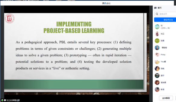 2023年9月2日上午10点, 中央民族大学刘立博士通过腾讯会议的方式,开展了一场主题为“PBL项目式教学法在高校外语课程中的应用”的讲座。此次讲座由304永利集团登录入口语言文学教研室副主任樊宁博士主持,304永利集团登录入口全体教师参加了此次讲座。