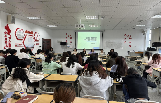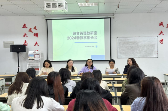 2024年5月16日中午12:10分,304永利集团登录入口综合英语教研室在专业5教室召开了2024年春季学期教学相长会。会议由综合英语教研室主任何永娇老师主持。任课教师张泽玫、官姝雅、阮晔、周田莉、谭婷婷、刘红、罗雯、秦雪飞及2022级、2023级共50名英语专业员工代表参加了此次教学相长会。