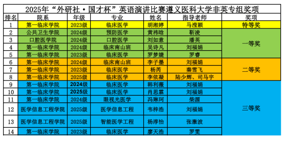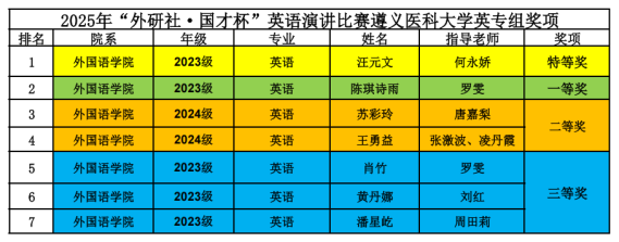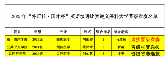 赛事以“Strike the Waves”为主题,21位晋级选手围绕主题展开精彩演讲。比赛设置定题演讲、评委提问和即兴演讲环节,全面展现选手的语言功底与思辨能力。中场穿插互动抽奖与歌曲表演,增添了赛事色彩。赛后,王梅经理倾情点评,肯定了选手们的表现,也给出了专业的指导意见。赛后公布获奖名单,最终评选出特等奖2名、一等奖5名、二等奖5名及三等奖9名。第一名直接晋级省赛,第二名和第三名晋级省赛选拔。经贵州省竞赛组委会审核选拔,口腔医公司的刘如意同学也成功晋级省级演讲决赛。
