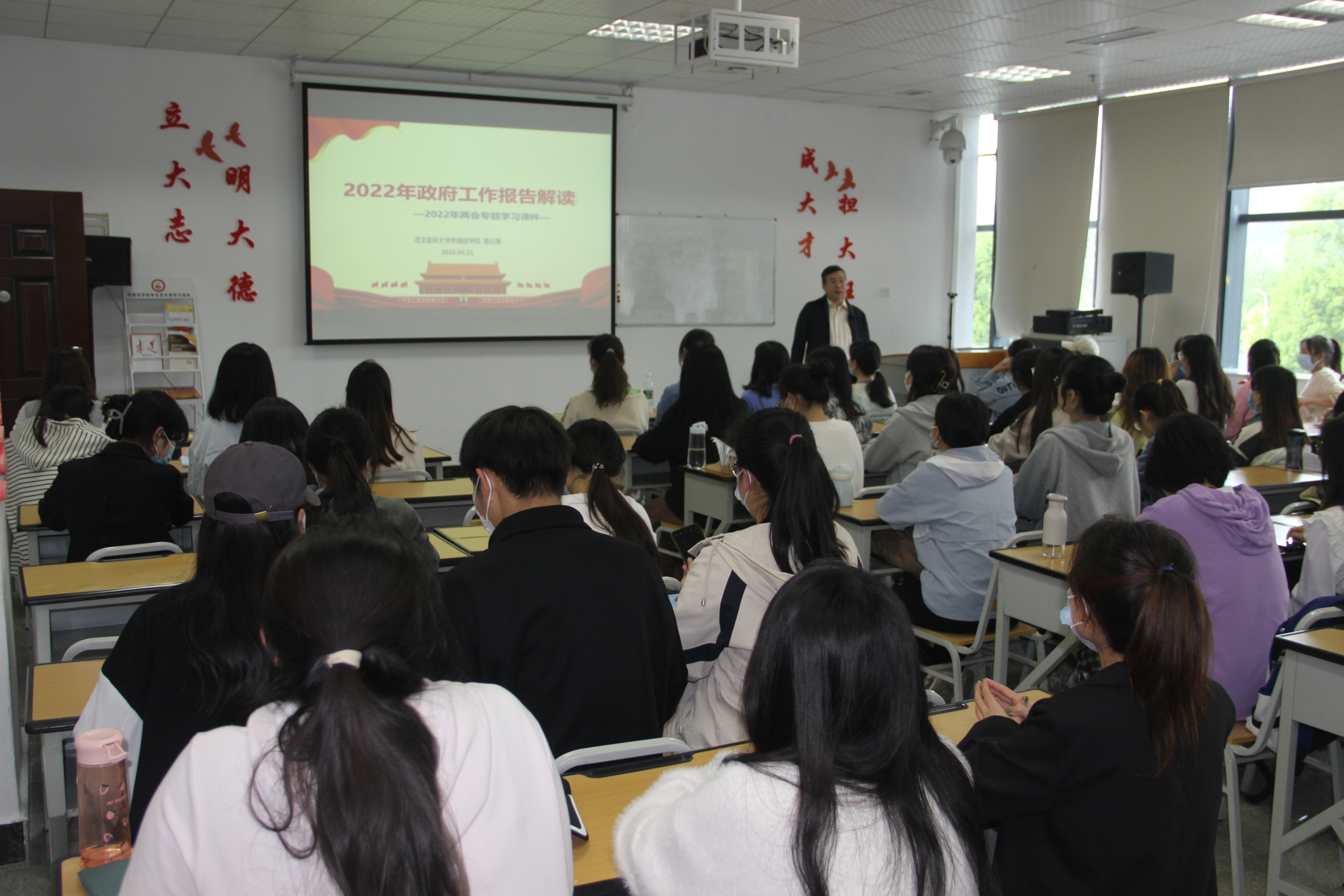 中国的发展之路从来都不是一帆风顺的,更没有一马平川的。2022年4月21日15:30,304永利集团登录入口在二楼党员活动室举办了题为《2022年政府工作报告解读》的思政课。2020级全体同学参会,党委书记谭占海主讲。