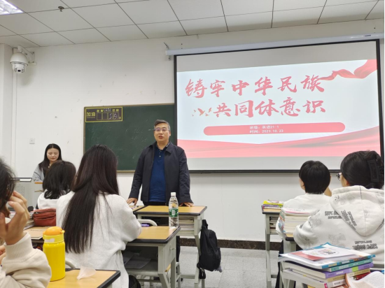 本次班会以“铸牢中华民族共同体意识”为主题,谭占海聆听了同学们精彩的分享,针对铸牢中华民族共同体意识的重要性展开思政教育。同学们通过分享榜样人物事迹,提出了个人要为铸牢中华民族共同体意识积极奉献的观点。他叮嘱同学们要树立正确的国家观、民族观,铸牢中华民族共同体意识更需要同学们身体力行。他对班级获得了上学年“省级先进班集体”称号给予了充分的肯定,对同学们提出了新的美好希冀。此外,谭占海十分关心同学们的学习情况,提出了帮扶经济困难员工的可行性方案。