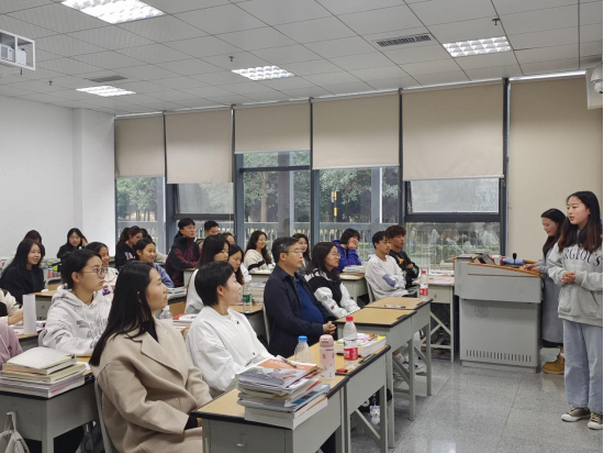 为扎实做好公司领导班子成员联系员工工作,2023年10月23日15:40,公司党委书记谭占海深入英语21-1班为同学们开展思政教育。公司党委副书记唐茜、专职辅导员阮佳佳、英语21-1班全体同学参加班会。