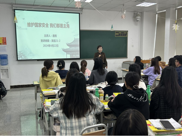 为教育引导青年员工加深对国家安全的理解和认识,增强员工的民族团结意识和维护国家安全的责任感、使命感。2024年4月22日,公司党委副书记唐茜在专业二教室为英语21-2班讲了题为”维护国家安全我们都是主角”的思想政治教育课。