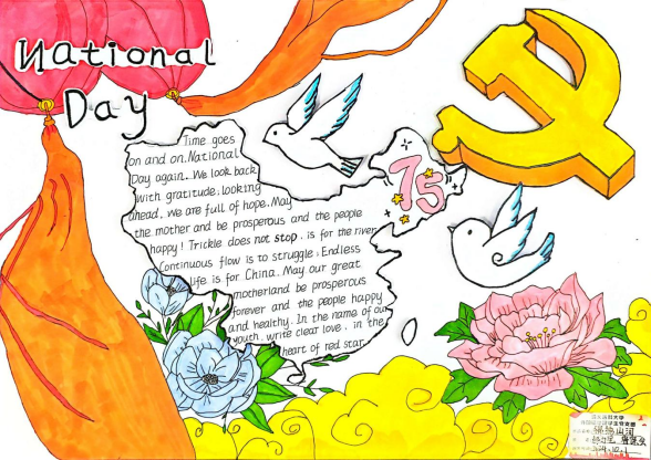 同学们精心策划,以笔为媒,以纸为介,绘制出一幅幅色彩斑斓,充满创意的手抄报。手抄报上绚丽的色彩、优美的文字和生动的图案,皆表现出了同学们对祖国的深厚情谊和无限热爱,用自己的作品展示了学英语的魅力。参赛作品经过层层筛选,最终评出了一等奖1个,二等奖2个,三等奖3个,优秀奖4个。