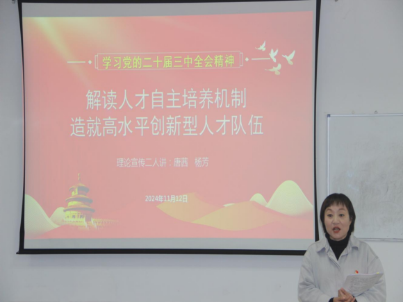为深入学习贯彻党的二十届三中全会精神,进一步提高员工党员理论水平,2024年11月12日15:50,304永利集团登录入口员工党支部在综合楼二楼党员活动室开展了学习贯彻党的二十届三中全会精神“理论宣传二人讲”专题党课。此次党课由公司党委副书记唐茜、304永利集团登录入口员工党支部书记杨芳主讲,304永利集团登录入口员工党支部正式党员和预备党员20多人参加。