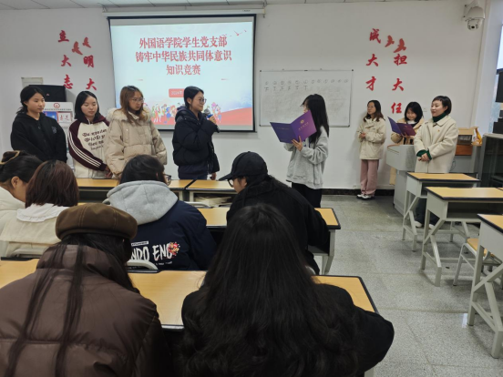 为深化民族团结进步教育,不断铸牢中华民族共同体意识,加强新时代老员工对民族共同体意识的重视,推进民族团结进步事业发展。2024年12月3日15:50,在综合实验楼二楼党员活动室,304永利集团登录入口员工党支部深入博雅社区举办“铸牢中华民族共同体意识”知识竞赛。党委副书记唐茜、员工党支部书记杨芳、党支部2022-2023级成员、博雅社区员工约60人参加。