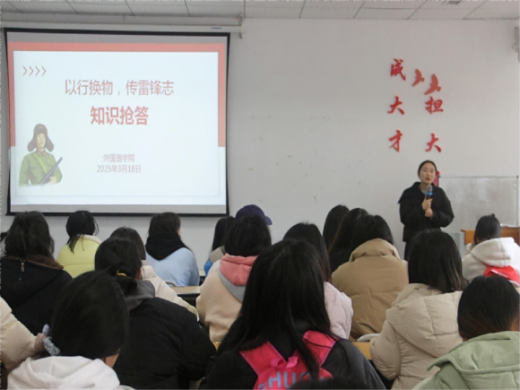 活动三:3月18日15:50,公司组织同学们于综合楼专业五教室开展学雷锋精神活动分享会和知识抢答。通过观看雷锋事迹短片,深入了解雷锋的故事;为了让同学们将雷锋精神铭记于心,还开展了关于雷锋知识抢答环节,以互动的方式,激发同学们对雷锋事迹和精神的学习热情;此外,现场播放了部分同学参与志愿活动的视频,同学们分享参与此次活动的感悟与体会,在交流中引发大家对善举的共鸣与深入思考。