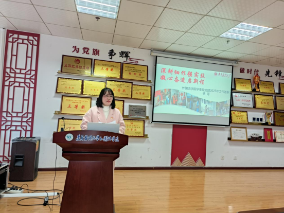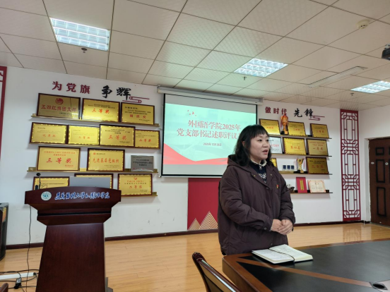 教工第一党支部书记樊宁、员工党支部书记杨芳和教工第二党支部书记周田莉依次围绕基层党支部2025年“三会一课”开展情况、支部标准化建设、支部的引领带头作用等重要内容,进行了述职汇报。公司党委书记谭占海对教工第一、第二党支部书记汇报分别做出点评,公司党委副书记唐茜对员工党支部书记汇报做出点评。