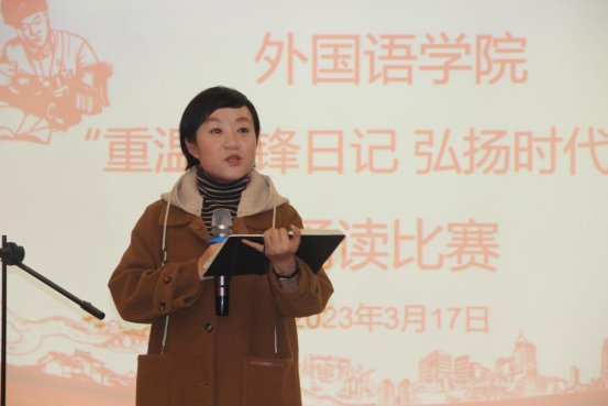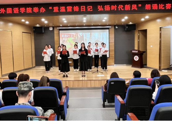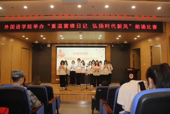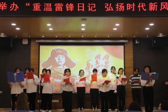 诵读围绕“重温雷锋日记,弘扬时代新风”的主题,将雷锋精神凝练与生动铿锵的语句,通过诵读的方式让雷锋精神滋润同学们的心灵。各班选派的九支代表队各具特色,感人肺腑的低吟、铿锵有力的咏叹、气势磅礴的呐喊,为我们带来了《新时代青年续写“雷锋日记”》《心中的雷锋》《雷锋精神 时代传承》《春风处处颂雷锋》等富有激情的诵读故事,感染了在座的各位同学。诵读与歌唱、情景剧等多种形式结合起来,生动讲述了雷锋公而忘私的奉献精神,用力诠释着雷锋躬身实践的使命担当,传递了满满的正能量。最后,唐茜副书记作赛后点评,她赞扬了同学们的精彩表演,鼓励同学们要用实际行动让雷锋精神焕发出新时代的熠熠光辉。