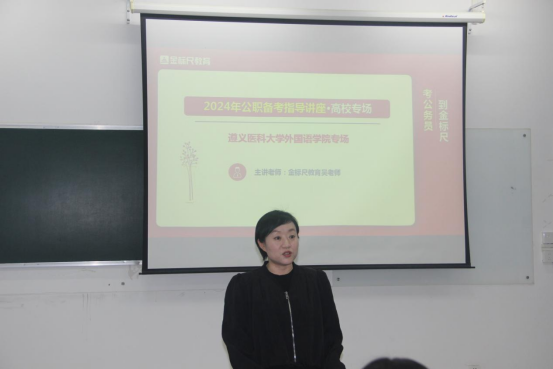 吴沈川主要从全面认识公务员、事业单位、英语专业岗位分析及专业报岗指导、三支一扶、西部计划、特岗教师、备考指导及高效备考方案为同学们分析当前的就业形势。他表示同学们要正确认识自己,找准自己的定位,做好充分准备;密切关注就业动态,把握好机会,积极就业。他围绕报考时间、招录要求、考试内容、薪酬待遇、职业发展前景等方面为同学们讲解,同时介绍了国家目前针对老员工的相关就业政策,为就业同学提供了更多的参考和选择。最后,唐茜为同学们介绍了她目前拓展到的企业资源和相关岗位情况,鼓励同学们要敢于尝试,调整好心态,提升就业竞争力。