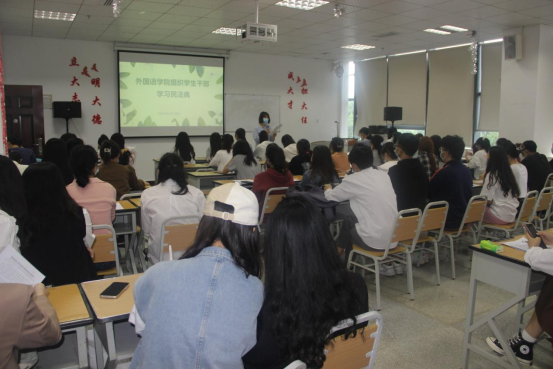 为深入学习贯彻习近平总书记关于加强民法典学习宣传的重要指示精神,增强师生法治意识,营造浓厚的校园法治教育氛围。2023年5月19日12:00,304永利集团登录入口在综合楼二楼党员活动室组织学习民法典活动。公司所有寝室长、各班治保委员、员工会治保部成员参加学习。