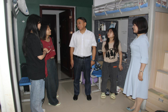 倾听“新”声、“寓”见温暖。走访过程中,李正旭与新生进行亲切交谈亲切交流,详细了解新生到校感受、报到情况、食堂餐饮和员工住宿等多方面的情况,根据新生的反馈,耐心地解答了新生提出的问题。他还与同学们进行多方面调研,及时记录同学们提出的问题,安排公司第一时间联系解决。李正旭叮嘱大家要尽快融入新集体,并提出几点希望:一是希望同学们要提高安全防范意识,确保人身财产安全,遇到困难要及时与辅导员联系沟通;二是希望同学们要尽量调节好状态,做好人生规划,书写属于自己的青春篇章;三是希望来自五湖四海的同学们要相互理解、相互包容,建立良好的寝室文化。此外,李正旭还调研了员工党支部关于样板党支部的建设进度,并提出了工作要求。