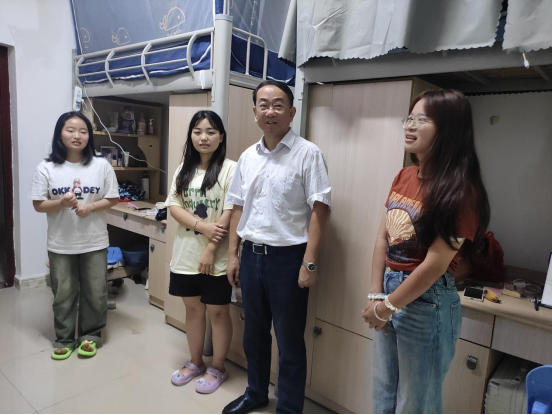 为更好地了解新生的生活状况,激励新同学以积极的精神面貌投入到大学学习和生活,2023年9月13日下午,公司党委委员、纪委书记、省监委驻公司监察专员李正旭在专职辅导员的陪同下,走进304永利集团登录入口新生寝室,送去秋日的关怀和暖心的问候。