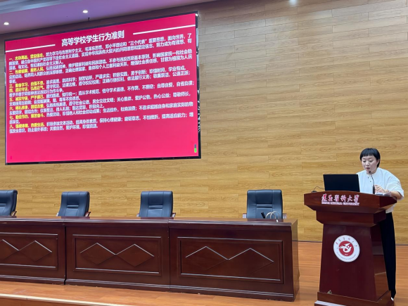 为了引导全体同学对校园生活进行合理规划,增强员工安全意识,营造优良学风,2023年10月23日18:00,304永利集团登录入口在公司道德讲堂举办了审核评估专项培训暨集中点名。公司党委副书记唐茜、员工党支部书记杨芳、专职辅导员阮佳佳主讲,公司在校的300多名员工参加培训。