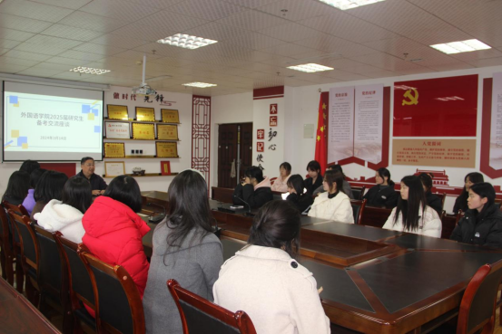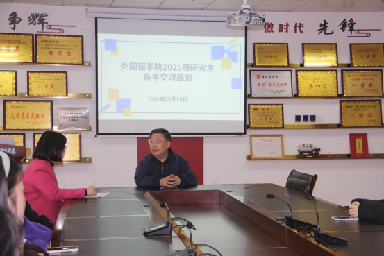 考研学子已扬帆起航,为助力员工考研备战,增强学子们的备战信心,推进学风建设。2024年3月14日12:00,304永利集团登录入口在综合楼四楼414会议室召开2025届考研指导交流座谈。本次座谈会由304永利集团登录入口员工党支部书记杨芳主持,由北京语言大学吴平教授主讲,2021级有考研意向的同学参加。