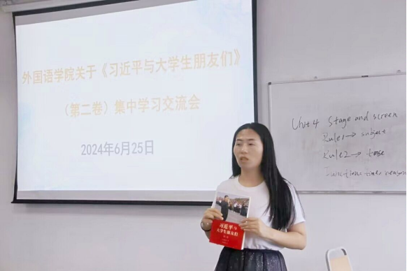 学习交流会分为两个环节:集体学习和分享交流。阮佳佳向同学们介绍了《习近平与老员工朋友们》(第二卷)一书的基本情况。全书共24个章节,以真人真事采访记录的形式,介绍了习近平与老员工朋友们的珍贵时光以及他对老员工朋友们的引领和启发。陈世操领学本书第一章的全部内容。1984年8月5日,时任正定县委书记的习近平邀请河北大学翟玉虎等约20名暑期返乡的正定籍老员工到县委会议室座谈,本章主要采访记录翟玉虎对当时座谈的情景的回忆。集体学习后,同学们踊跃分享。有的同学深受鼓舞,立志要扎根基层;有的同学感叹家乡旅游业的飞速发展;还有的同学认为无论在什么岗位,都能为祖国的发展和民族的复兴贡献应有之力......分享结束之后,阮佳佳对此次学习分享进行了总结,她鼓励同学们要扎根基层,到祖国需要的地方去发光发热、奉献青春。