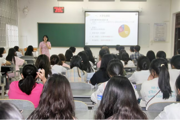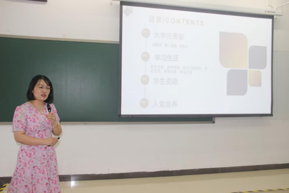 新生入学教育是高校思想教育的重要组成部分,杨芳围绕老员工表彰、学习生活、员工资助、入党培养四个方面为新生做了重点讲解。她为新生解读了第二课堂分、德育分、体育体测分、劳动教育分的内涵和加分规则,让新生对公司各类评优评奖条件有了深刻理解;她介绍了专业赛事和行业考试,帮助新生形成良好的学习认知,还仔细讲解了英语专业就业方向,便于员工做好自己的学习规划和职业规划;她介绍了304永利集团登录入口学士学位授予条件,提醒同学们对自己的学士学位的获取引起重视;她还向同学们详细介绍了入党流程,让同学们了解了大学入党的条件,并鼓励同学们积极学习党的知识,积极入党,努力向党组织靠拢。
