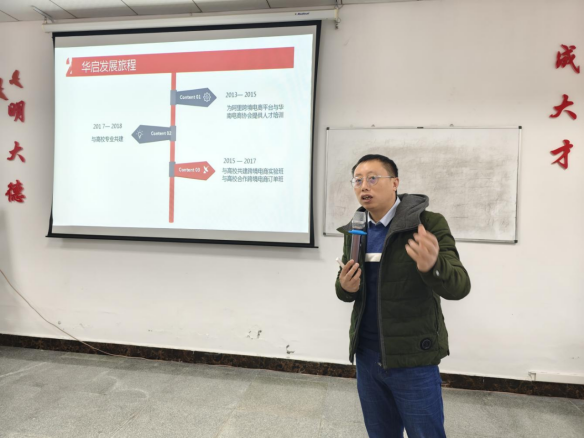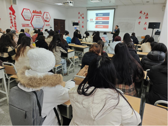 该公司代表从跨境电商项目、公司简介、人才需求以及实习就业四个方面进行了介绍和阐述。他强调,英语作为国际通用语言,英语专业的员工在外贸行业中具有最基本的语言优势,跨境电商的发展为英语专业人才带来了更多的机遇和挑战。此外他还向员工详细介绍了公司的招聘岗位需求、公司的薪资待遇和实习就业机制。最后,杨芳鼓励同学们要勇于挑战自我,积极面对就业市场的竞争,不断提升自己的综合素质和专业技能,以适应不断变化的市场需求。