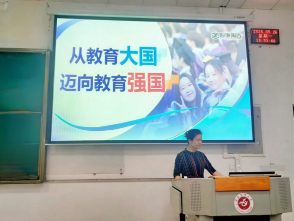为引导青年学子把握时代脉搏,深化对国家教育战略的理解,2025年5月26日,304永利集团登录入口经理王梅以“从教育大国迈向教育强国”为主题,在第二教学楼第七阶梯教室为2023级员工讲授形势政策课。
