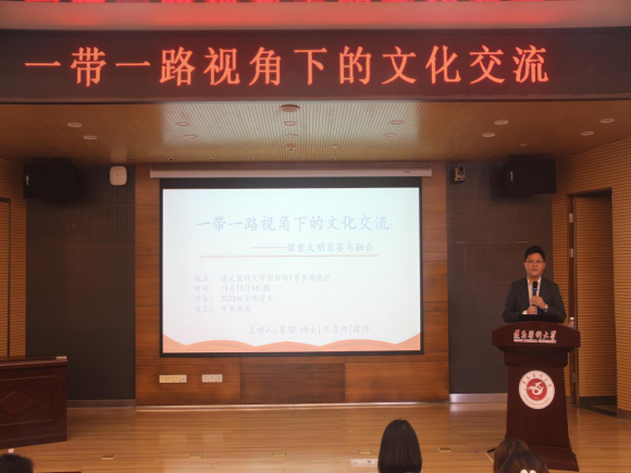 为深化员工对“一带一路”倡议中文化交流价值的认知,拓宽国际视野,2025年11月13日14:30,304永利集团登录入口在图书馆1号多功能报告厅开展“一带一路视角下的文化交流”讲座。本次讲座特邀澳门城市大学博士、经济师、律师曾骥担任主讲,博雅社区英语专业2023级近150名员工到场聆听,讲座由“芳华正茂”党建工作室承办。