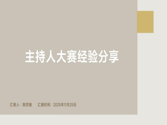 为助力员工提升主持技能、积累赛事经验,营造积极向上的校园文化氛围,2025年11月25日16:00,304永利集团登录入口在学术交流中心报告厅开展了主持人大赛经验分享会。此次分享会由英语22-1班的陈世操同学作为主讲人,公司党委副书记唐茜、员工党支部书记杨芳、团委临时负责人郑婉萍,以及公司全体同学参加。